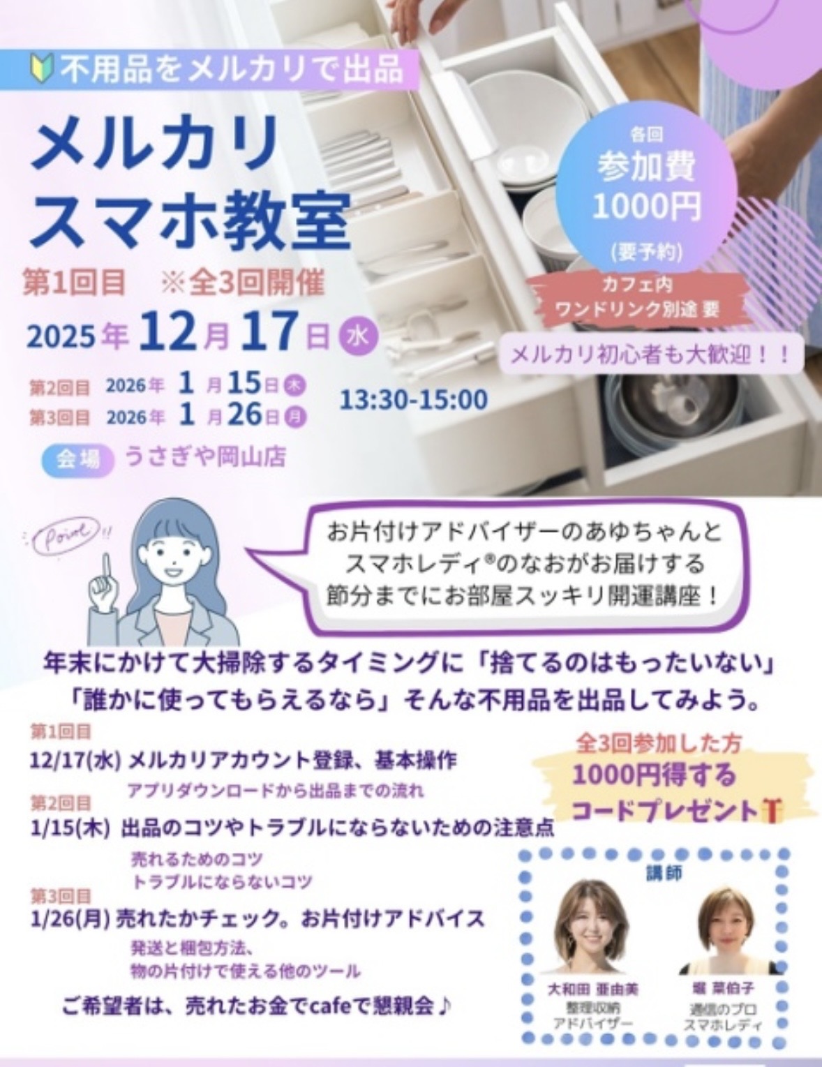 【年末の片付け大チャンス】メルカリで不用品をおこづかいに!《メルカリスマホ教室@岡山 開催のお知らせ》