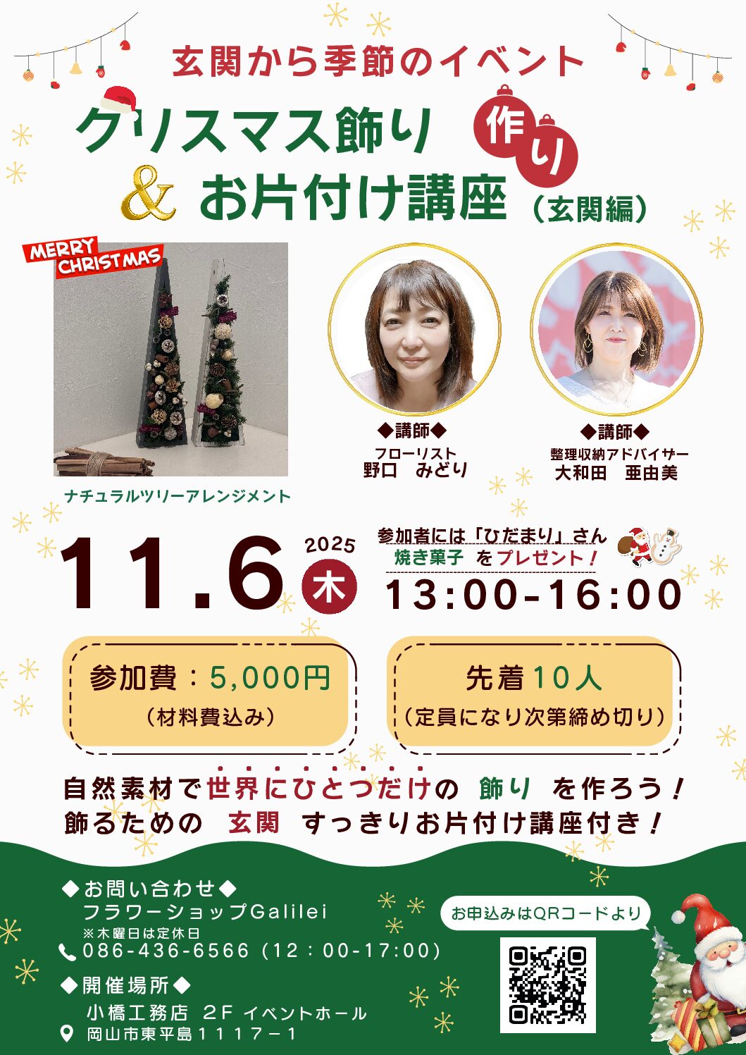 この機会に、家の中を心地よく整えて、クリスマスシーズンを迎えましょう。参加ご希望の方は以下のリンクからお申し込みください。お待ちしております!